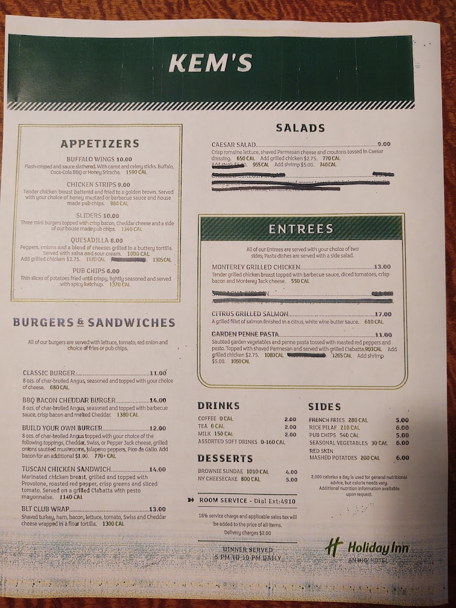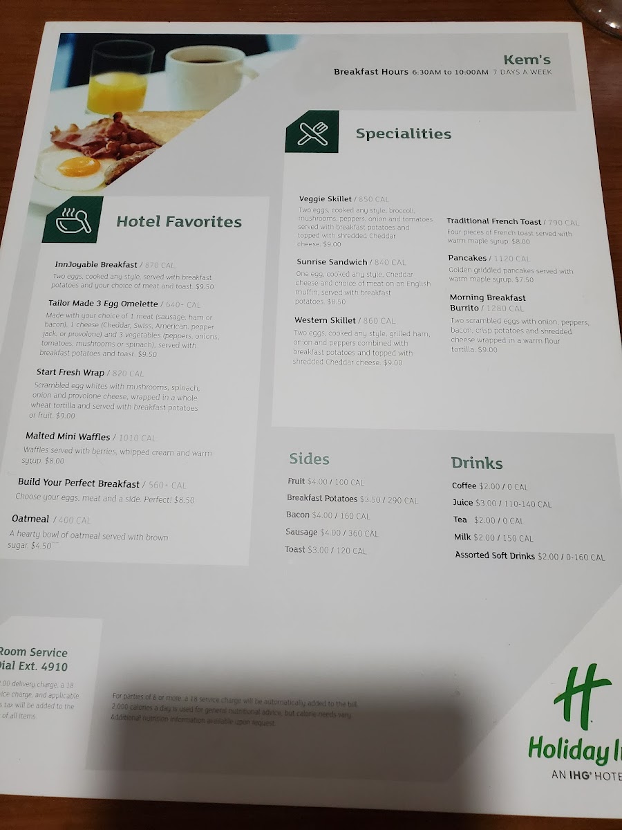 Welcome to Kem's Restaurant, a delightful dining gem nestled within the Holiday Inn in Beckley, WV. Renowned for its welcoming atmosphere and attentive service, this restaurant offers a charming space to enjoy both breakfast and dinner.
